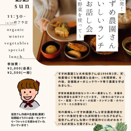 ・小一時間ほど援農体験あり(靴は汚れても良いスニーカーでご参加下さい。参加自由。)。